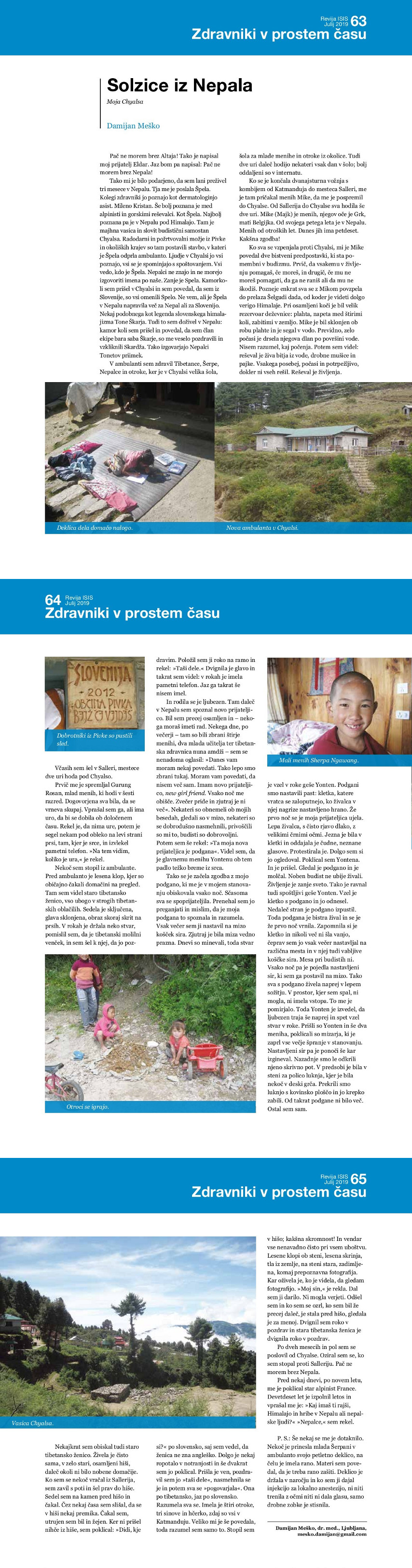 izpolnjuje svoj namen. Dr. Damijan Meško je v članku v reviji Zdravniške zbornice opisal svojo izkušnjo iz Chyalse.